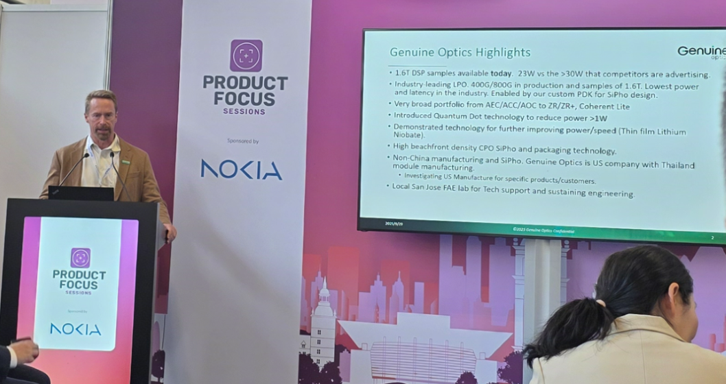 Genuine Optics副总裁David Huff介绍了全系列创新的高速互联方案,以及广泛的数据通信产品组合:AEC/AOC和收发器,覆盖直接检测(DSP、LRO和LPO)以及相干(ZR/ZR+/CohLite)领域,研发总部位于加利福尼亚,在泰国拥有全资工厂,生产线现已投入运营。随着AI光互联需求的爆发性增长,Genuine Optics借助其在硅光子学、光学集成、电子设计、先进封装、光学引擎及大规模制造等方面的深厚积累,已完成1.6T可插拔光模块商用开发,并且支持开放定制、JDM(联合设计制造)以及适配大规模部署的合作商业模式。