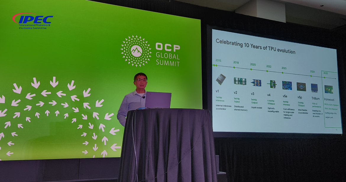 【摘要:受OCP邀请,IPEC国际光电委员会在美国圣何塞OCP Global Summit 2025大会上成功主办AI光互联专题论坛,会议邀请来自Google、Arista、LightCounting、博通、海信、Lumemtum、Ciena、华为等公司产业领袖和专家,探讨AI光互联向448G/Lane演进的关键问题:成本、带宽、效率和可靠性】