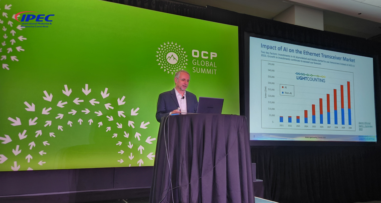 2025年10月13日,IPEC国际光电委员会在美国圣何塞开幕的OCP Global Summit 2025大会上成功主办AI光互联专题论坛,探讨448G/Lane等技术标准的最新进展,研讨会题目为“The Boost for AI: Next-Gen Optical Interconnects”。
